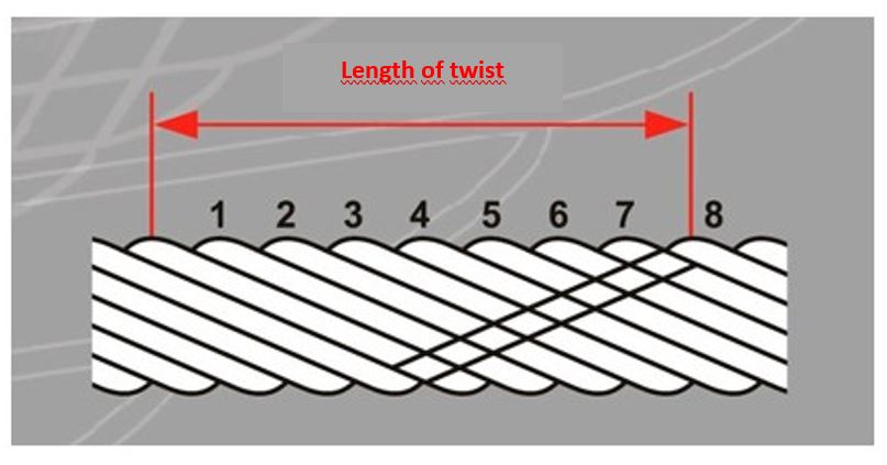 La longueur de torsion de câblage d’une couche de torons donnée dans un câble métallique est la longueur de torsion de cette couche disposés en hélice.
