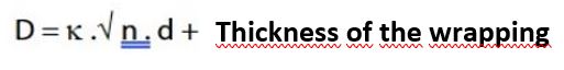 Le diamètre extérieur nominal fabriqué à partir de fils de cuivre émaillés individuels avec un revêtement textile est déterminé approximativement par la formule suivante.